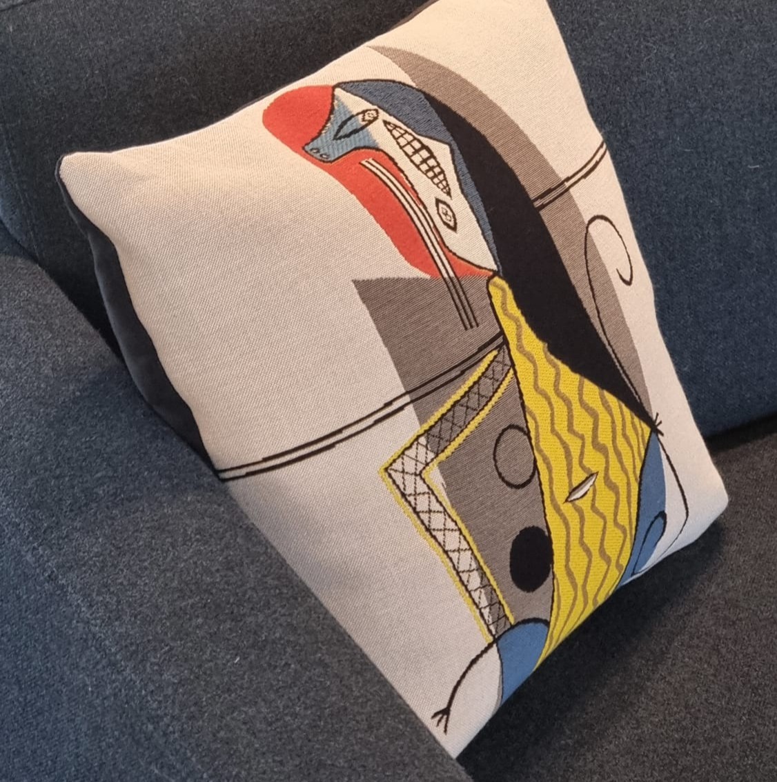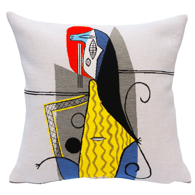 Hoe mooi is dit kussen! Geweven in jacquard naar het werk van de Spaanse kunstenaar Pablo Picasso. Dit kussen van geweven katoen is ideaal om een vleugje originaliteit aan een bank of bed te geven en zo uw interieur karakter te geven. Jacquardweven maakt het mogelijk om elke draad afzonderlijk te controleren, wat de reliëfeffecten mogelijk maakt. Zo word bij het weven elk penseelstreek van de kunstenaar vertaalt naar een subtiel en elegant effect. Deze kan je ook buiten gebruiken, ook heel leuk!